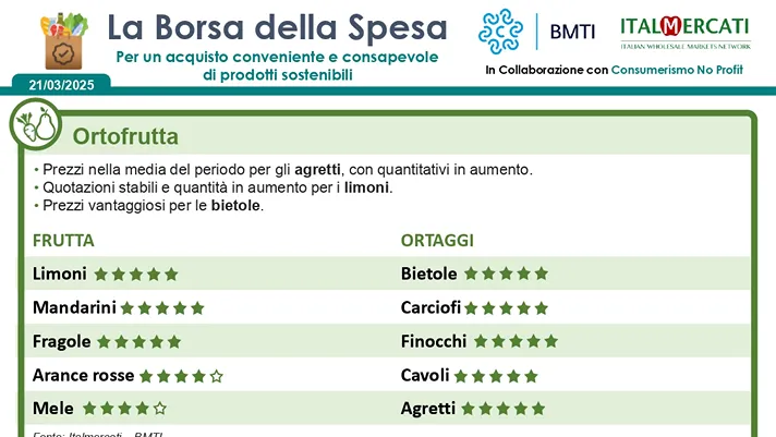 I prezzi di frutta e verdura con La Borsa della Spesa, il servizio di BMTI e Italmercati in collaborazione con Consumerismo No Profit