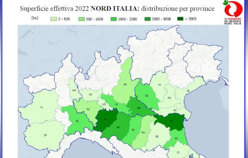 Pomodoro da industria 2022: coltivati oltre 37mila ettari nel nord Italia