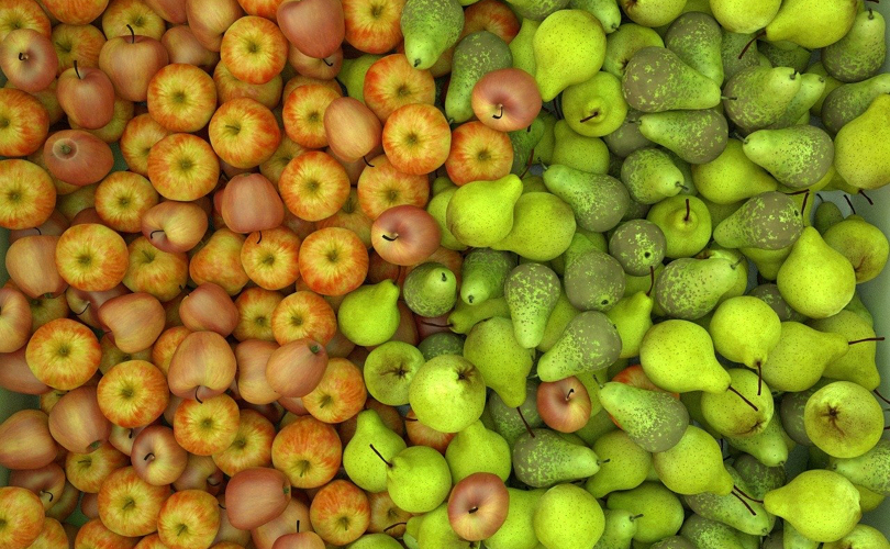 Per le mele si stima una diminuzione rispetto alle indicazioni di agosto del 4%, per le pere del 6%