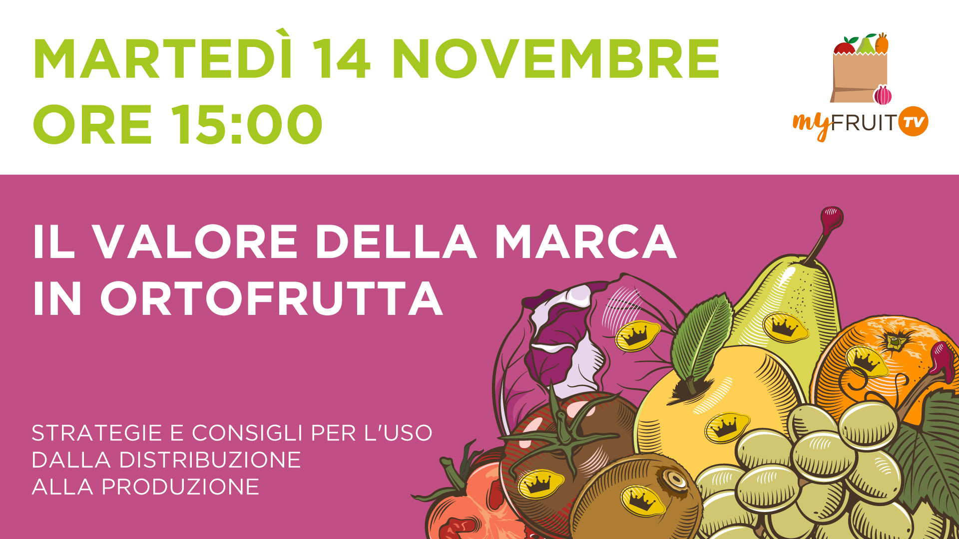 Il 14 novembre alle ore 15:00 appuntamento con il webinar “Il valore della marca in ortofrutta. Strategie e consigli per l’uso dalla distribuzione alla produzione”. Diretta live sui canali Linkedin e Youtube di myfruit.it.