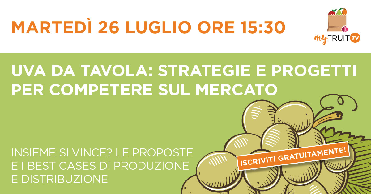 Il 26 luglio alle ore 15:30 sarà live su linkedin il nuovo webinar di myfruit.TV dedicato all’uva da tavola. Dalla questione con i semi o senza, all’innovazione, dalla stagionalità al packaging sostenibile.
